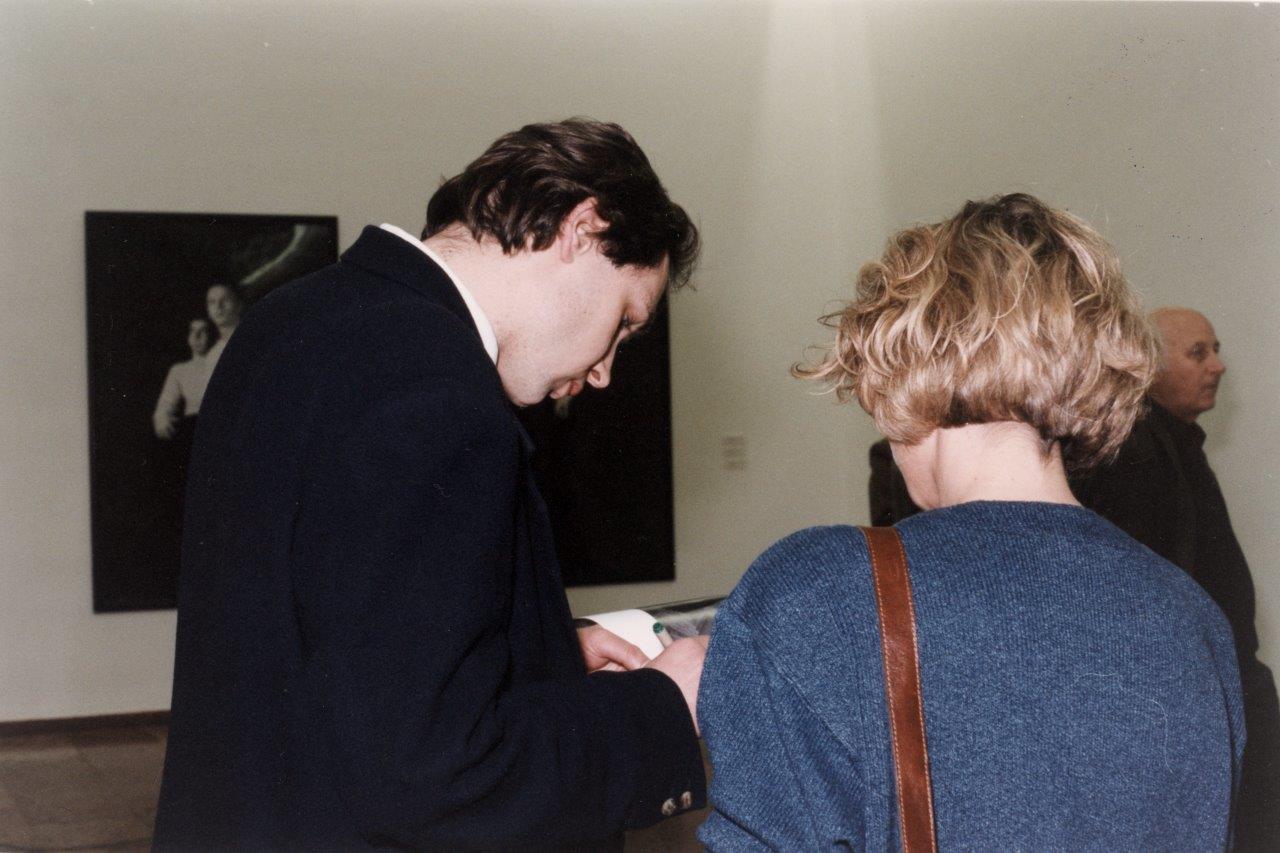 A fiatal krakkói művész, Piotr Jaros három fotóinstallációt állított ki Budapesten: az első és második „Umarmen”-sorozatot és a „Triumf”-ot. Jaros 1994-95-ben kezdett nagyméretű fekete-fehér, beállított fotókkal dolgozni, korábban konceptuális installációkat készített. Az „Umarmen”