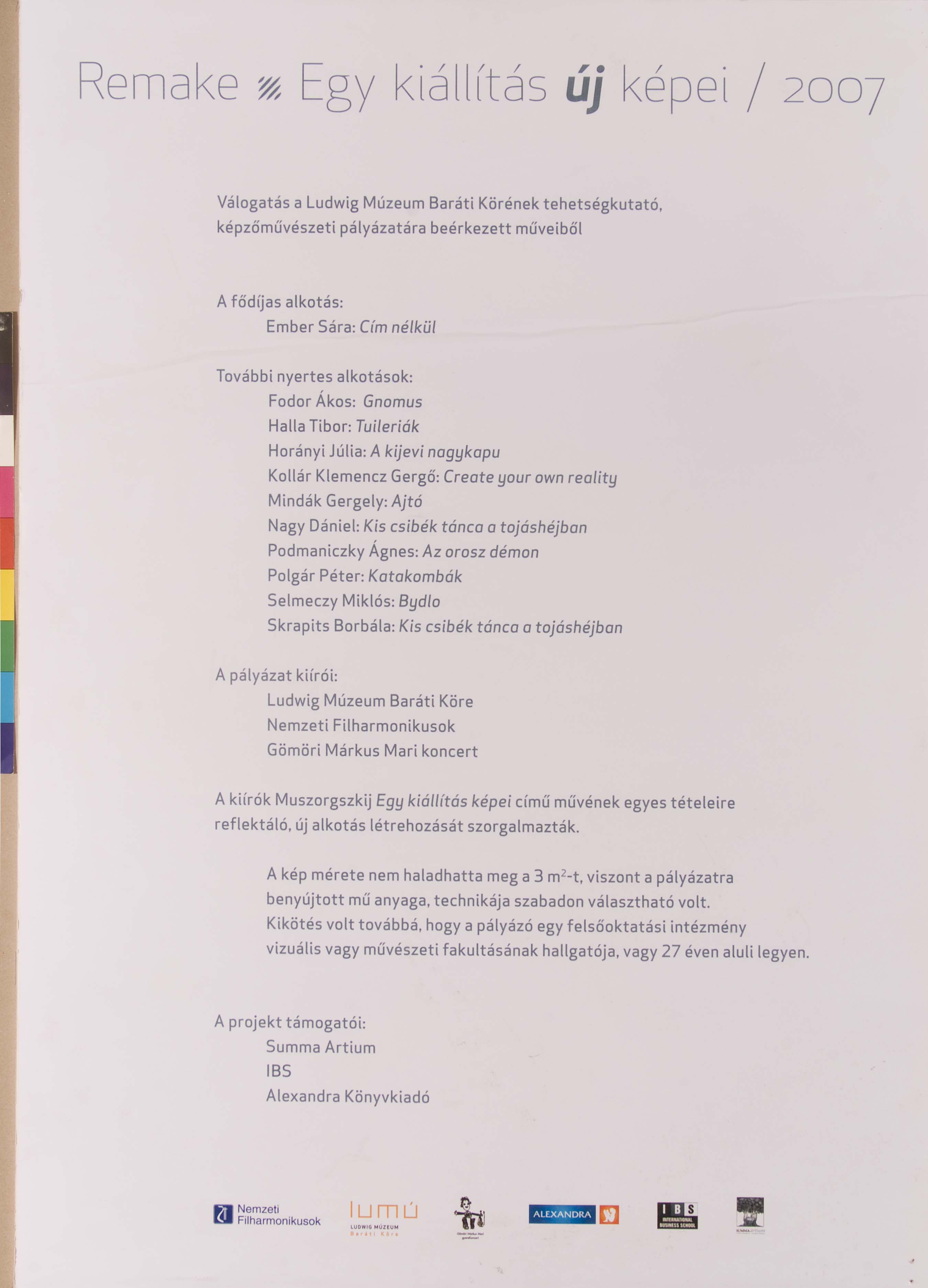 A dokumentáció részletes tartalmáért forduljon kollégánkhoz az alábbi címen: adattar@ludwigmuseum.hu
