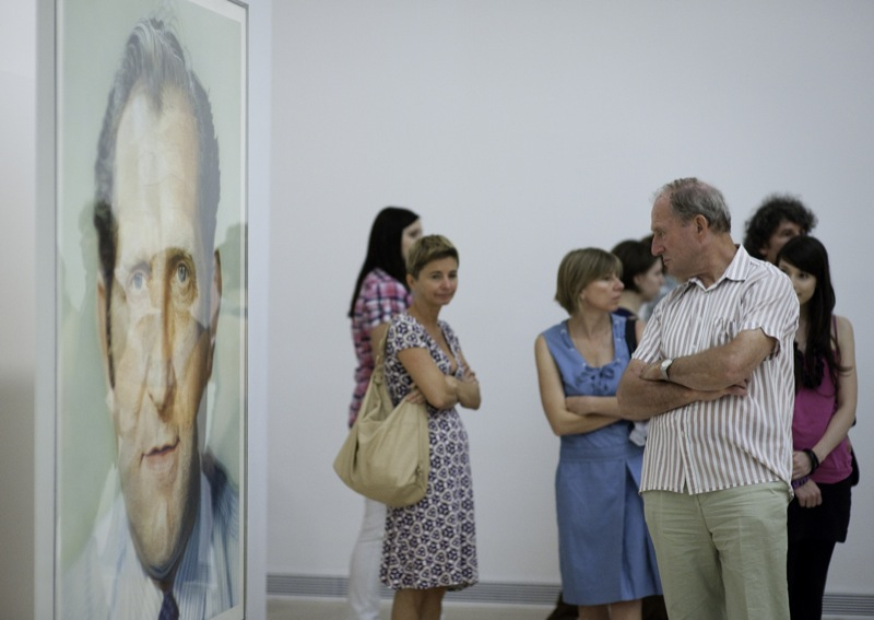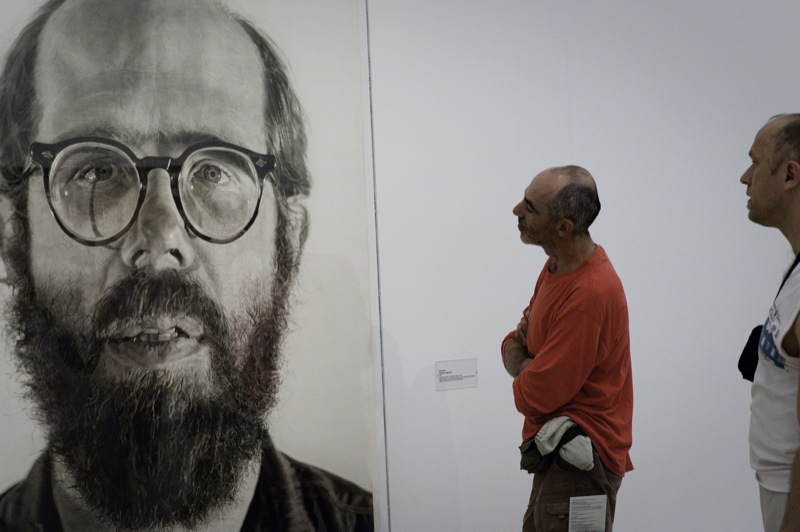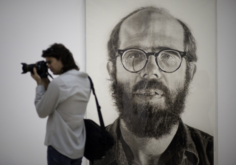 Chuck Close is one of the best-known representatives of hyper-realist style; the feature of such a descriptive painting that it uses not the material environment but its photograph as a model. Close began to paint his friends, his colleagues and later his family using drawings, polaroid photograp