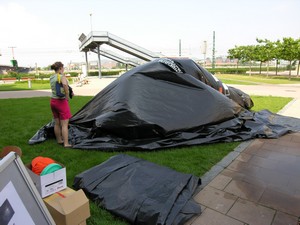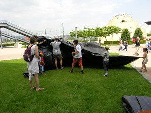 Together with the participants, the artist will build a large-scale (100-150 m2) Camera Obscura. Then, in the darkness within it, they will render visible the image of the outside world by projecting it onto smoke and canvas, to record it finally with a digital camera.