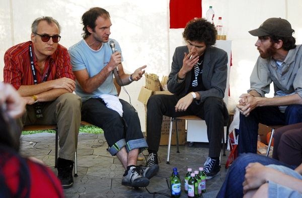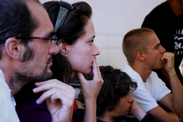 with János Sugár, artist; András Tábori, student of the Hungarian University of Fine Arts; Gergő Kovács (MKKP); and Viktor Kotun, organiser, Reaktor Gallery)