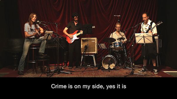 Based in Berlin since 2002, Hajnal Németh works at the intersection of visual art and music. Her interdisciplinary works include performances, moving image formats, audio and space installations. Her works are created in different variations, which she emphasises in the titles. She usually makes several “versions” of each, and the numbered works (version 1, 2, 3) are based on the same theme, structure and form. Her works are based on musical scores, song lyrics, poems or fragments of prose, quotations from various sources and the artist’s own texts. The artist questions the gesture of the quotation by rewriting the quoted text and developing a quasi-corrected, but in any case arbitrarily modified version with new/other meanings. Imagine War – Version 3 (Band Version) takes the form of a 30-minute concert performed by a band in a temporary formation. The composition consists of 10 well-known songs. The musical interpretation leaves the songs recognisable, but the lyrics are edited transcriptions; some of the words replaced completely change the content. Thus the “anthem of hope and peace” is transformed into a “song of war”, the mirror of the legendary Velvet Underground song into a terror, the Beatles’ Sun into a weapon.