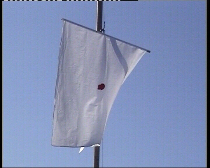 Japan is among Koja’s (Fitore Isufi) earliest videos. The flag, waving calmly under an almost hypnotic melody of Leonard Cohen’s the well-known Hallelujah, derides a local tradition long out of practice in the urban areas, still existing, however, in rural Kosovo. It is about celebrating a woman’s virginity after her first marital night by exposing the couple’s white sheet stained with blood, an evidence of the female’s purity toward the family that will welcome her. The flag—metaphorically alluding to Japan’s flag through its iconography—questions the relevance of traditional customs in contemporary society. BK