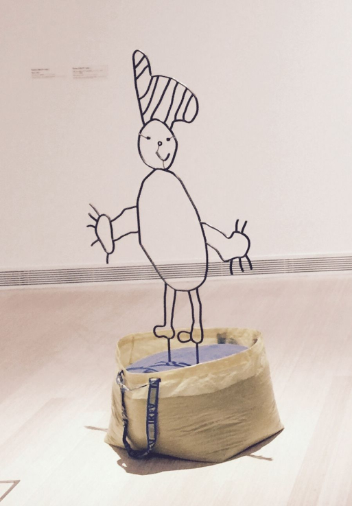 Flaka Haliti grew up in Kosovo and began her studies at the Academy of Arts in Pristina. She then moved to Frankfurt and Munich to continue her artistic career. She represented Kosovo at the 56th Venice Biennale in 2013. Inspired by her experience living abroad, Haliti began to address issues of cultural and artistic identity. In her works, she explores the boundaries of mobility, freedom and democracy, but the structural analysis of the social network and the art market also plays an important role in her art. Her work, Nihal, is a part of a series of ten works, each with a separate name, in which Haliti explores the questions of identity, escape, migration and mobility. Her bags filled with blue sand not only refer to uprooting, but to the loss of possession associated with leaving home. Haliti displays the colours of the European Union that is the subject of desire, while blue for her is the colour of the horizon, and thus a metaphor for something constantly in mind which may never be reached. Her small wire figure is based on children's drawings symbolizing purity and innocence.