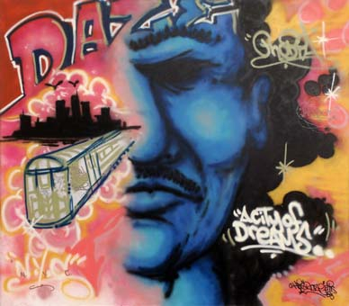 A korábban szubkulturális jelenségnek vagy egyenesen vandalizmusnak tekintett graffitit a nyolcvanas évektől kezdődően fedezték fel a galériák és a gyűjtők. A graffitiművészek közül néhányan műtermekben, vászonra kezdtek festeni; műveiket nemcsak az alternatív kiállítóhelyek és éjszakai klubok, de a kereskedelmi galériák is szívesen kiállították és árusították. Chris (Daze) Ellis New York-ban, Brooklynban született. A választott művésznévnek nincs rejtett jelentése: Daze egyszerűen olyan betűket választott „tag”-jéhez, amelyek feliratként jól néztek ki. 1976-ban kezdett metrókocsikra fújni, miközben a manhattani High School of Art and Design-ba járt. Első csoportos kiállítása a meghatározó „Beyond Words” volt a Mudd Clubban 1981-ben, majd hamarosan megrendezték első önálló kiállítását a Fashion Modában. 1983-ban Peter Ludwig is vásárolt tőle műveket a neves Sidney Janis Gallery-n keresztül. Daze ezt írta saját munkájáról: „Műveim robbanásszerűen alakított betűformákból és rajzokból állnak, amelyeket a mindennapi élet városi karikatúráival kombinálok. A két elem együtt a kortárs jelen és a jövő egyaránt érvényes képét mutatja.” Az „Álomváros” című festmény egy nagyvárosi víziót jelenít meg, melynek meghatározó eleme egy nagyméretű, karakteres, kékkel és feketével plasztikusan megfestett férfiarc. Az élénk narancs-rózsaszín-sárga háttér előtt New York-nak, „az álmok városának” sziluettje tűnik fel a kép bal oldalán, a várost övező felhőbuborékból előtörve egy metrószerelvény robog a néző felé. A szabad felületeket festékszóróval fújt feliratok és tag-ek uralják: a művész neve/aláírása, New York City nevének rövidítése, a „szellem” és a „bölcsesség” szavak, valamint további, léptékükben kisebb feliratok a metrókocsin. A dinamikus kompozíció a „writerek” nagyvárosi életérzését és a graffiti esztétikáját ötvözi. Szipőcs Krisztina