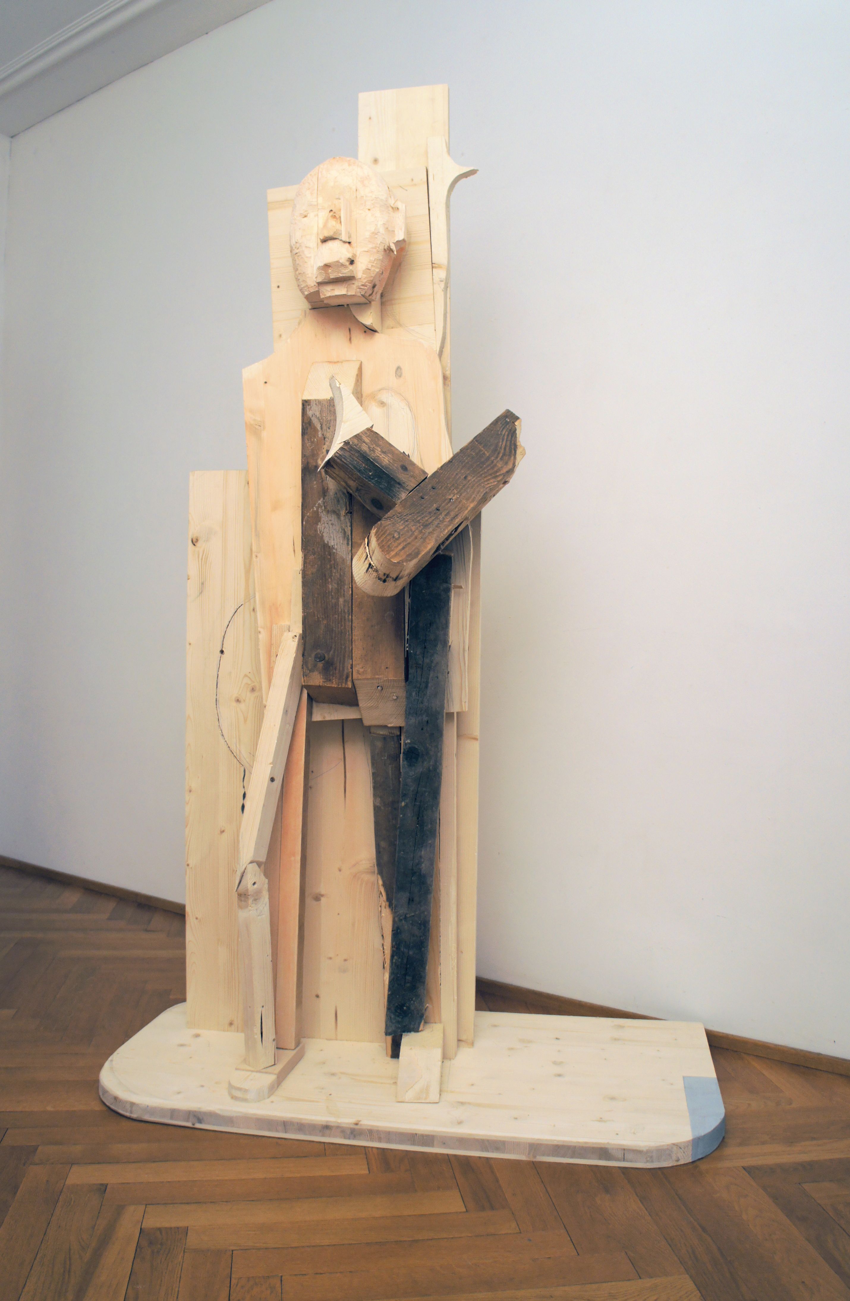 EL-HASSAN Róza Ébredés című művét első ránézésre szinte klasszikus modern szobornak tarthatnánk. A tárgy különféle – használt és új – fa-anyagok kombinálása révén jött létre; létrehozásának folyamatát szinte végig tudjuk követni rajta. Ez a folyamatszerűség részben tipikus jellemzője a modern művészetnek, részben pedig az újabb, performatív művészi gyakorlatok irányába mutat. A szobor különös megmunkáltsága is kettős: bizonyos elemei alig megdolgozottak és szinte tákoltnak hatnak, míg például az arc egyfajta gondos megmunkálás kezdetét mutatja. A befejezetlenség érzete ugyanakkor azt is jelzi, hogy a művet nemcsak a művész a saját munkájával, de a néző is a saját gondolataival többféleképpen is „befejezhetné”. A szobor El-Hassan korábbi, ülő szobrainak folytatása, ahol néha az alak fekete lepel alatt (R. A túlnépesedésre gondol, 2001), néha pedig szabadon jelent meg (Moszkva tér-projekt, 2003). A felidézett figura ülő változata a menekült alakja lehet, az álló pedig akár az Arab tavasz lázadó hőse.