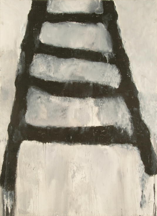 A második világháborút az amersfoorti koncentrációs tábor közvetlen közelségében átélt Armando a hatalom és kiszolgáltatottság, a bűn és az erőszak megjelenítését választja művészi témájául. Mély hatást gyakorolt rá Jean Fautrier Túszok-sorozata csakúgy, mint az Art brut, a CoBrA csoport, valamint az Art Informel irányzat. A holland Zero csoport objektív művészetfelfogását tükrözve a fekete-fehér ellentét lesz sorozatai alapja. Az informel anyaghasználatának megfelelően és az erőteljes kifejezés érdekében a festéket homokkal vegyíti, pasztózussá téve a felületet. Armando nyolcvanas–kilencvenes években készült létrái a szabadító gondolatok vízióiként jelennek meg. A létra az európai kultúrkörben összetett szimbólum, néprajzi és bibliai értelemben kapocs az ég és föld között. A Ludwig-gyűjteménybe a művész ajándékaként 1996-ban került Létra alatt nincs talaj, körülötte nincs tér és időre utaló bármiféle nyom. A pasztózus megmunkálás és a festékfolyások nyomatékosítják a kép és így a festői eszközök kifejezőerejét. Az elnagyolt rövidülés felfelé vezeti a tekintetünket, ahol azonban a biztos pontok nélkül lebegő tárgy a képtér hirtelen megszűnésével kilép a látóterünkből: a repülés bizonytalanságát, de a menekülés lehetőségét villantva fel. A festménnyel rokonságot mutat a tizennégy méter magas, felfelé keskenyedő, bronzból készült létra, amelyen Armando 1990-től dolgozott, és amelyet Amersfoortban, az egykori koncentrációs tábor helyén állítottak fel 1994-ben.