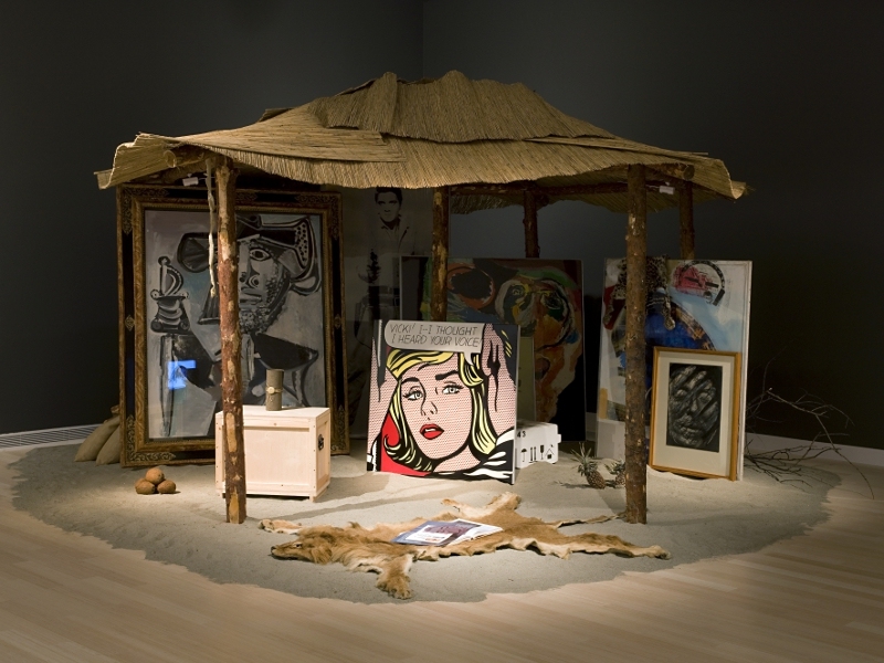 (afrikai kunyhó; homok, kiszáradt bokrok, mérges kígyók bőre, kókuszdiók, ananászok; eredeti műtárgyak: Rauschenberg, Appel, Lichtenstein, Immendorf, Beuys, Baselitz, Picasso, Estes, Rainer és mások)