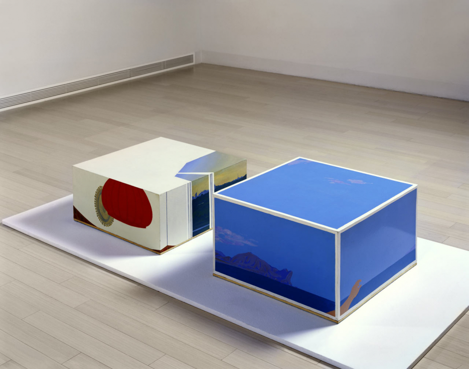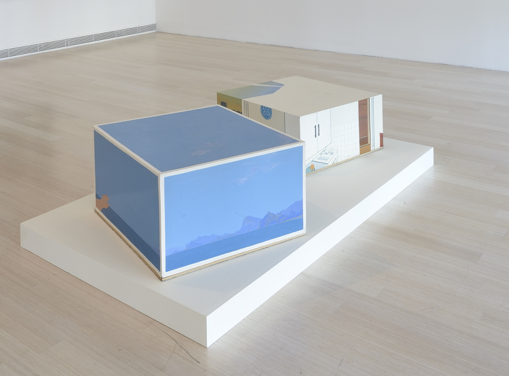 Ivan Csujkov (1935, Moszkva) orosz képzőművész, aki már a hatvanas évek végén kapcsolatba került a fiatal, „nem hivatalos” avantgárd művészekkel. 1976-ban a csoport elkötelezett tagjaként vett részt az úgynevezett nonkonformista művészek által szervezett Apt Art kiállítás-sorozaton. A festőnek tanult művész 1976-tól térben körbejárható Panoráma című installációján kezdett dolgozni. A „látványdobozoknak” is nevezhető konceptuális sorozatból két korai darab került Budapestre. A Panoráma I-en alpesi táj és felhős kék ég látható madártávlatból, a Panoráma II-n pedig egy lakótelepi ablakban megjelenő naplemente, valamint a belső tér, a konyha és a szoba falainak abszurd módon egyesített képe. A különös látvány feloldását a doboz tetején az üres, fehér felületre rajzolt lakásalaprajz adja. Az egymás mellett bemutatott két doboz a valóság egyedi, háromdimenziós leképezésén túl olyan fogalmakat ütköztet egymással, mint a nyílt és a zárt, a természeti és az épített, a szabad és a korlátozott.