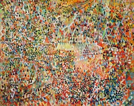1968-ban Rozsda kapcsolatba kerül a francia szabadkőművességgel, melynek beavatási szertatásában is részesül. Bár a festmény apró háromszögekből – szabadkőműves szimbólumokból – áll össze, mégsem utal a dogmatikus misztikára. Rozsdát képi megfogalmazásában a beavatási szertartás során történő 'per tenebras ad lucem' művelet, azaz a tekintet tisztulása a sötétség által, valamint a látás fiziológiai törvényszerűségei foglalkoztatják. Festménye kolorista álláspontot képvisel, mely ötvöződik egy barokkos horror vacuival, ugyanakkor felidézi a középkori ötvösművészetet és üvegfestészetet a formák és a színek kaleidoszkópszerű egymás mellé helyezésének, egymásból születésének, összefonódásának eljárásában. A feltöredezett festészet az euklideszi geometria szétrobbanását jelenti.