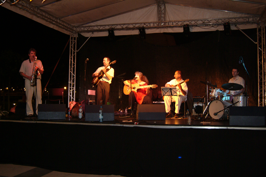 Mikor2006. június 24. Bérlettel nem látogatható Autentikus brazil bossa nova hangzás-, ritmus- és dallamvilág improvizatív elemekkel A zenekar tagjai: G. Szabó Hajnal (ének, akusztikus gitár); Rieger Attila (szóló gitár); Zakó Péter (bôgô); Cseh Balázs (dob); Tûzkô Csaba (szaxofon) DescriptionCopacabanaCopyrightFotó: Rosta József DescriptionCopacabana Bossa-Nova QuintettCopyrightFotó: Rosta József ElőzőKövetkező